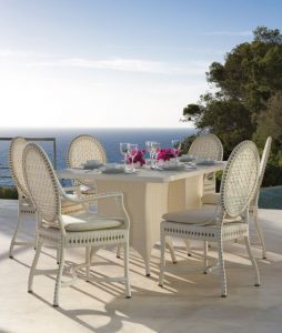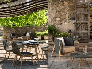 El mobiliario de exterior requiere de una reflexión ya que son piezas que deben estar fabricadas en un material resistente a la intemperie que no se deteriore ni se estropee con la lluvia, el sol, etc.