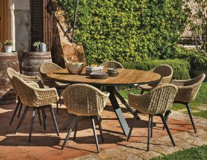 Actualmente, los materiales naturales se han eliminado de los catálogos a la excepción de la madera. Las fibras naturales tienden a deteriorarse. Son materiales con poros en los que se incrusta la suciedad y es imposible de limpiar y mantener. Respecto la madera, en este último año ha tenido un resurgir. Aparece combinada con fibras sintéticas consiguiendo una estética y diseño únicos en el mercado. Debemos tener en cuenta que para mantener nuestros muebles de madera, estos deberán tener un mínimo mantenimiento anual. Se debe aplicar aceite especial para la madera de exterior, la más empleada y de mayor calidad es la madera de teka.