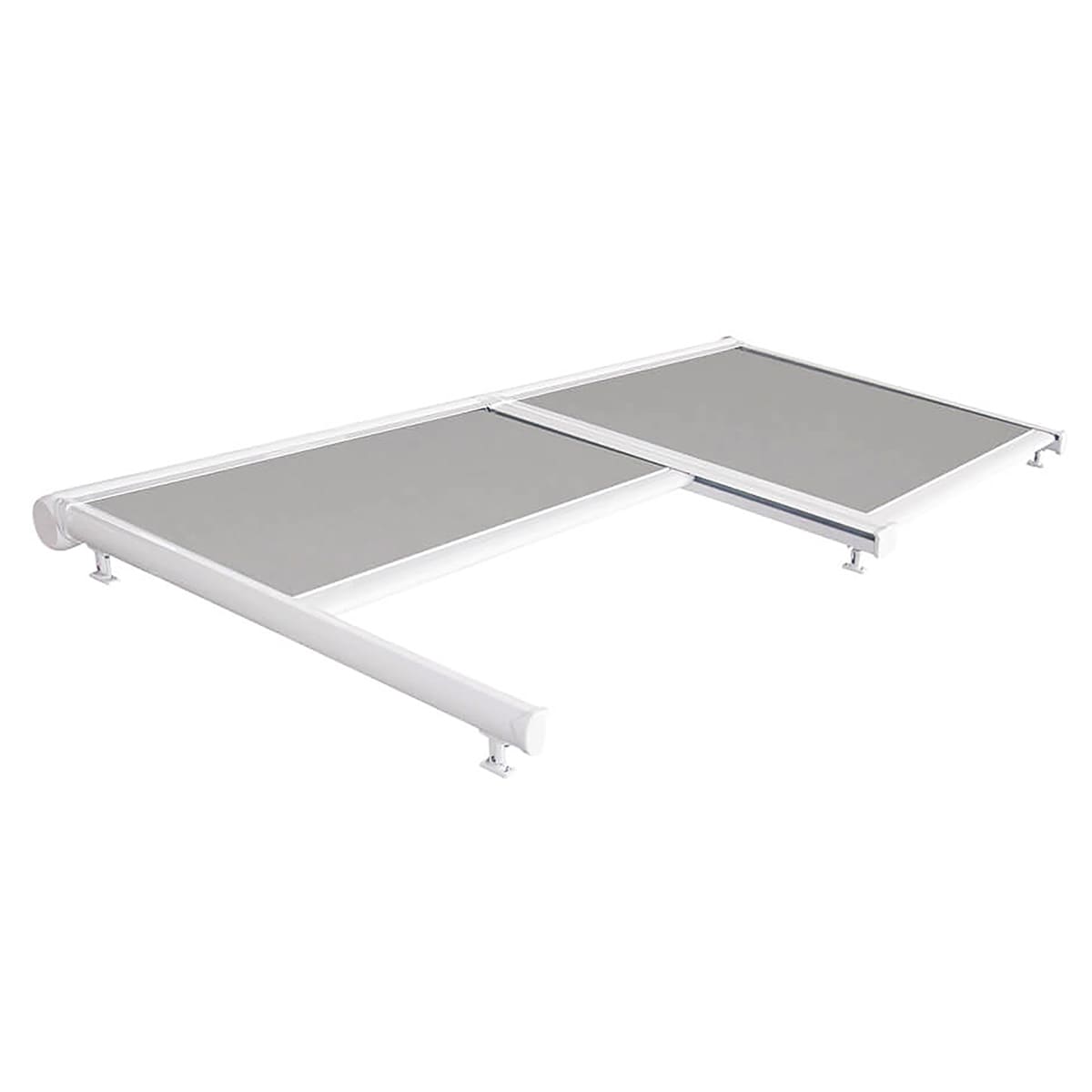 Toldo para techo acristalado. También puede instalarse sobre una estructura diáfana para conseguir una pérgola plana, sin pliegues.