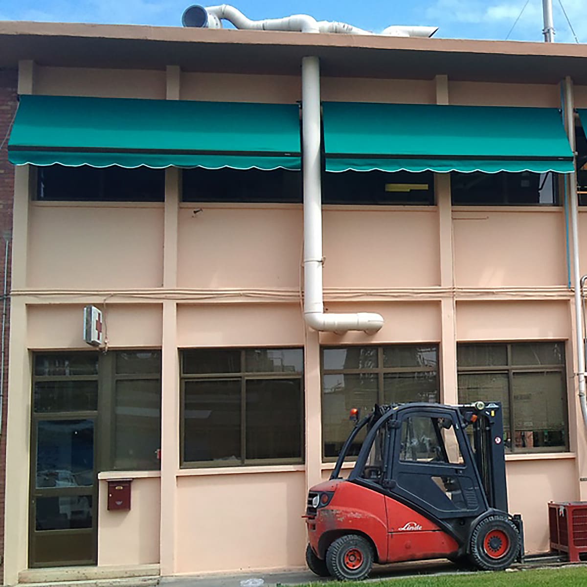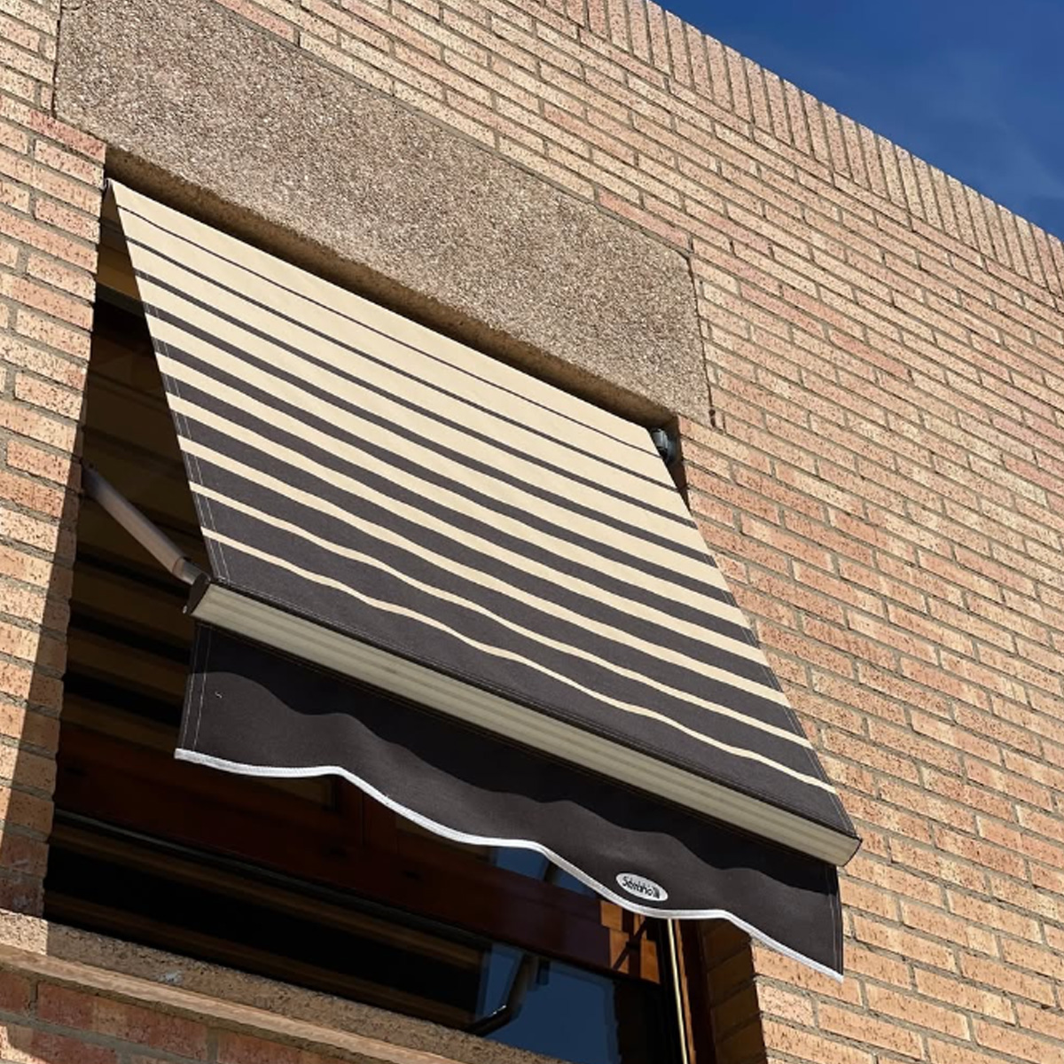 El modelo punto recto tensión, mejora el sistema tradicional punto recto y es el toldo más recomendado para ventanas sin balcón, por su adaptabilidad a huecos y por la resistencia de sus brazos al fuerte viento.